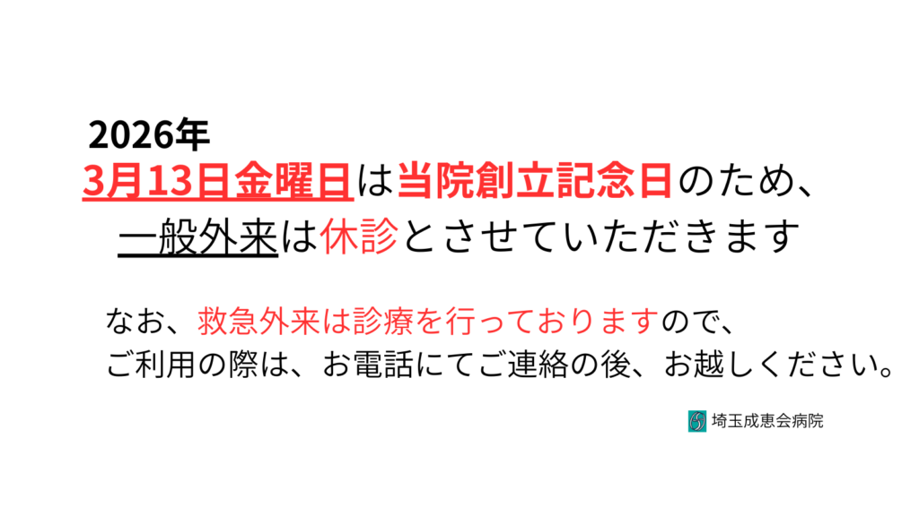 創立記念日のため、2026年3月13日を休診とさせていただきます。 なお、救急外来に関しましては平常通りの診療をおこなっておりますので、ご利用の際はお電話にてご連絡をお願い致します。